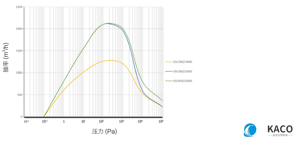 鮑斯螺桿干泵GSC系列泵組GSC300/2200D抽速曲線圖